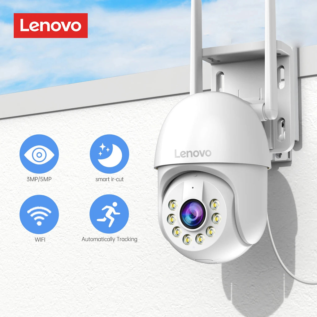 Câmera IP PTZ inteligente Lenovo com resolução de 5MP e zoom digital 5x, equipada com detecção de movimento por IA e rastreamento automático. Oferece visão noturna em cores, conexão WiFi 2.4GHz ou Ethernet, e áudio bidirecional para comunicação em tempo real. Com classificação IP66, suporta instalação em parede, pendente ou poste vertical, funcionando em temperaturas de -25°C a 60°C. Compatível com Android e iOS via app cam720, permite armazenamento em cartão SD (até 128GB) e nuvem. Sensor CMOS Sony de alta sensibilidade (0.001 Lux) garante captura clara em ambientes com pouca luz. Ideal para vigilância residencial e comercial em ambientes internos e externos.