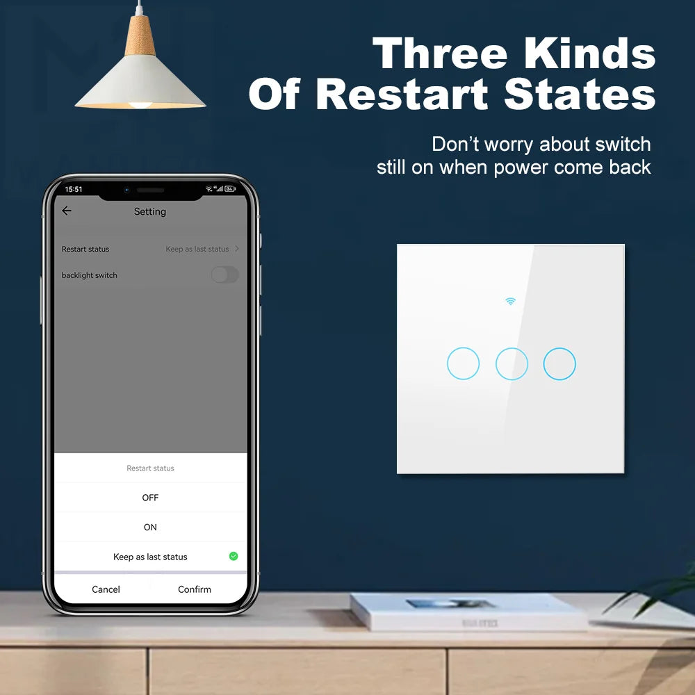 Interruptor Inteligente WiFi Tuya com tecnologia Touch Panel Alexa/Google Home