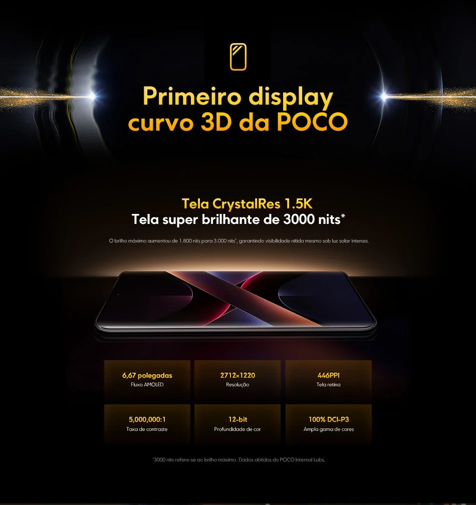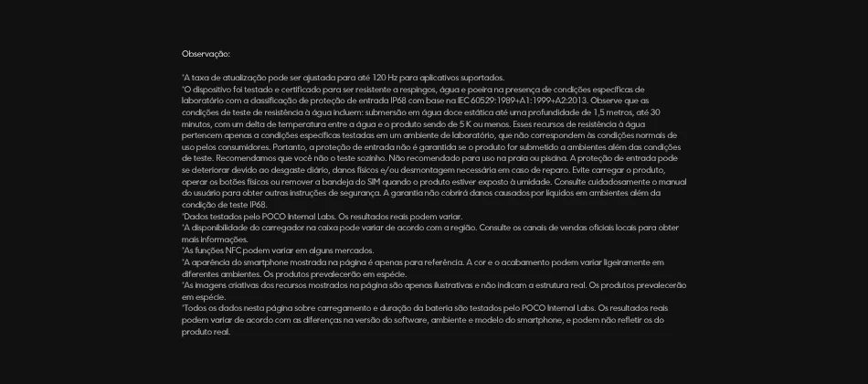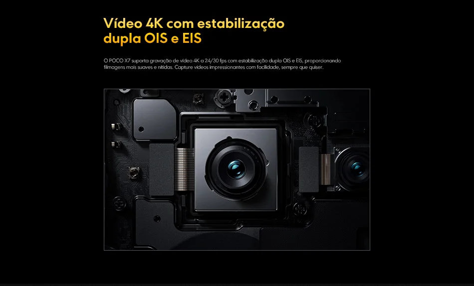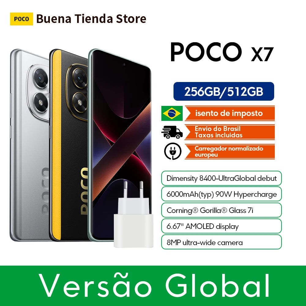 Especificações do POCO X7:n- Dimensão: Ultra 7300n- Tela: Curva 45W Ultra 6,671,5 K AMOLEDn- Câmera Traseira: 50MP (Principal) + 8MP (Ultra-lente) + 2MP (Macro) + 20MP (Frontal)n- Bateria: 5110 mAh com carregamento turbo de 45Wn- Sistema Operacional: Android com Xiaomi HyperOSn- Resistência à Água: Classificação IP68n- Conectividade: 5G/4G/3G/2G, Dual SIM, NFC, Bluetooth 5.4, WIFInnn|Poco X7 Aliexpress|Poco X7 5g Aliexpress|nnImagens de Alta Resolução n n O POCO X7 destaca-se no campo das câmeras com uma configuração de quatro sensores traseiros, incluindo uma principal de 50MP com estabilização de imagem óptica (OIS), uma ultra-lente de 8MP, uma macro de 2MP e uma frontal de 20MP para selfies de alta qualidade. Com uma tela curva de 6,67 polegadas e resolução Ultra 1,5 K, o POCO X7 oferece uma experiência visual imersiva, perfeita para jogos, vídeos e navegação na internet. n n Desempenho e Durabilidade n n Equipado com o processador Ultra 7300, o POCO X7 garante desempenho fluido e rápido em tarefas de multitarefa e jogos de alto desempenho. Com uma bateria de 5110 mAh e carregamento turbo de 45W, você pode contar com longas sessões de uso sem preocupações com a bateria. Além disso, uma classificação IP68 significa que o telefone é totalmente resistente à água e à poeira, oferecendo tranquilidade em diversas condições. n n Conectividade e Segurança n n Como um smartphone moderno, o POCO X7 vem com conectividade 5G, garantindo velocidades de dados impressionantes. Com capacidade de suportar dois cartões SIM simultaneamente, você pode alternar entre redes de dados e chamadas sem problemas. Além disso, o NFC permite um pagamento móvel seguro e conveniente. O POCO X7 também oferece uma tecnologia de segurança avançada, com reconhecimento de impressão digital e capacidade de desbloqueio facial para uma segurança de seu dispositivo.