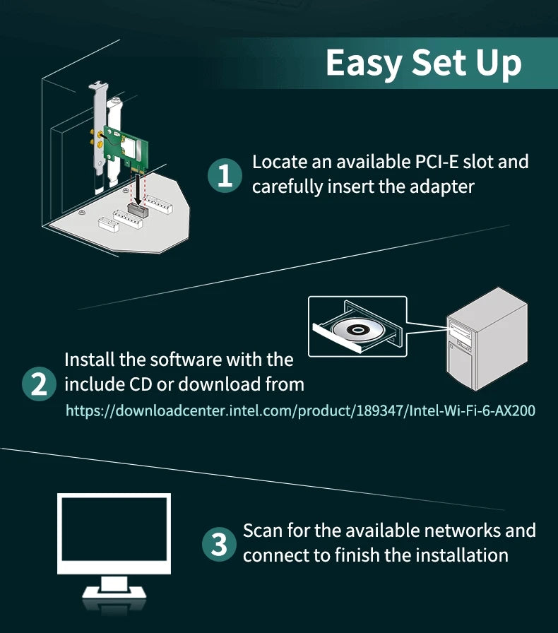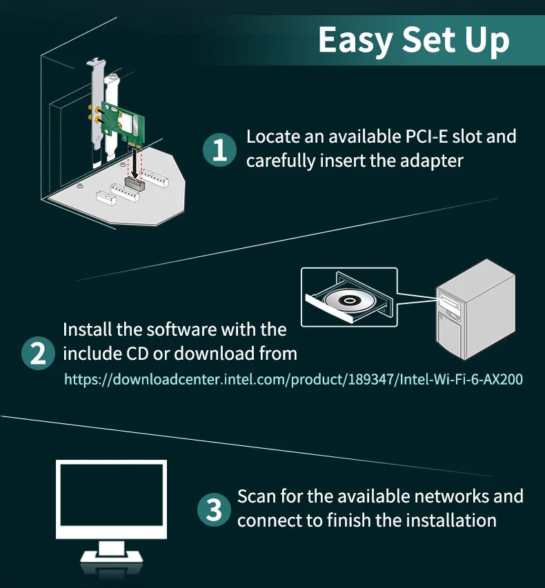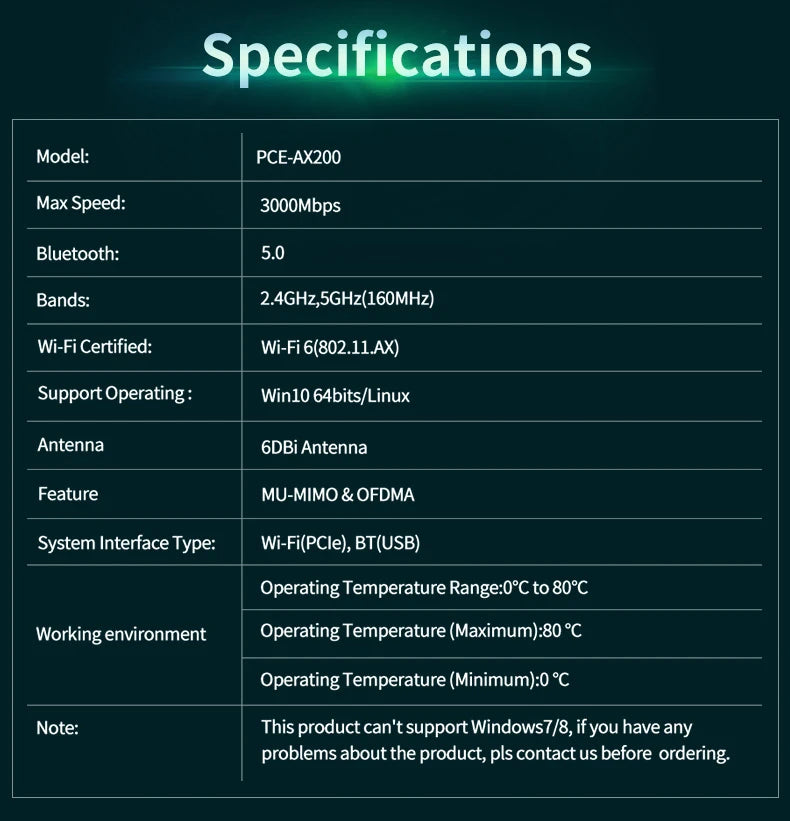 AX200 PCIE Cartão Adaptador de Wifi Bluetooth5.2 Dual Band 2.4G/5Ghz 2974Mbps